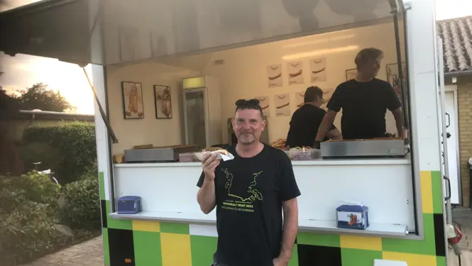 Brian samlede omkring 100 naboer til et arrangement med Midt- og Vestjyllands mobile politistation og en pølsevogn, han vandt i en af Nabohjælps konkurrencer.