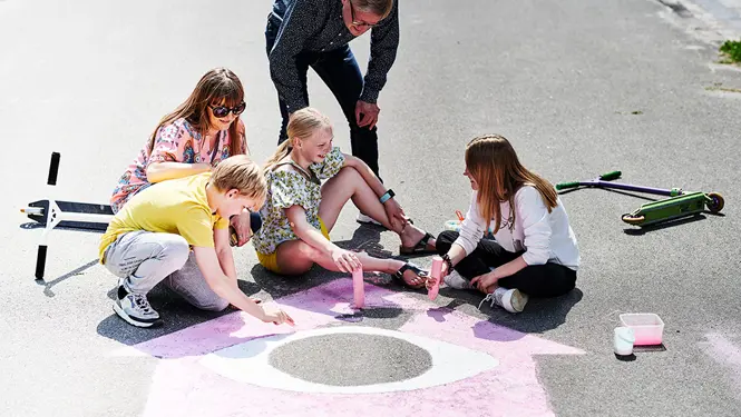 Når vejret er godt, er det dejligt at mødes udenfor på tværs af generationer. Find kridt frem, og invitér til et par timer med snak og hygge på vejen, hvor I kan lære hinanden lidt bedre at kende. Det er også en oplagt aktivitet, hvis der har været indbrud i nabolaget, hvor det gælder om at skabe liv og synlighed på vejene.