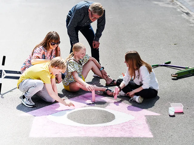 Mange børn elsker at tegne med kridt, og det skaber liv og aktivitet i nabolaget.